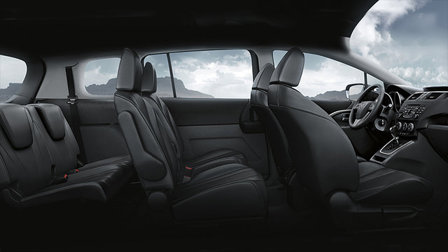 The 2016 Mazda5 offers up a total of 857 litres of cargo space if you fold down both rows. With both up, you’ll discover 112 litres of storage space for all your goods, and fold down just the third row and you’ve got 426 litres to fill up. In all, the Mazda5 has a cavernous interior, that’s made to feel even roomier up front thanks to the unique positioning of the gear shifter.