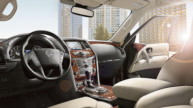 Inside, the all-new 2017 Nissan Armada sports its family ties to the QX80 with pride.