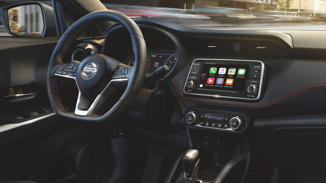 Step inside the 2019 Nissan Kicks and you’re greeted with an interior that’s spacious (much more spacious than the outside would allude to), as well as coloured stitching, soft-touch materials throughout and an easy-to-use infotainment system that also features Apple CarPlay and Android Auto.